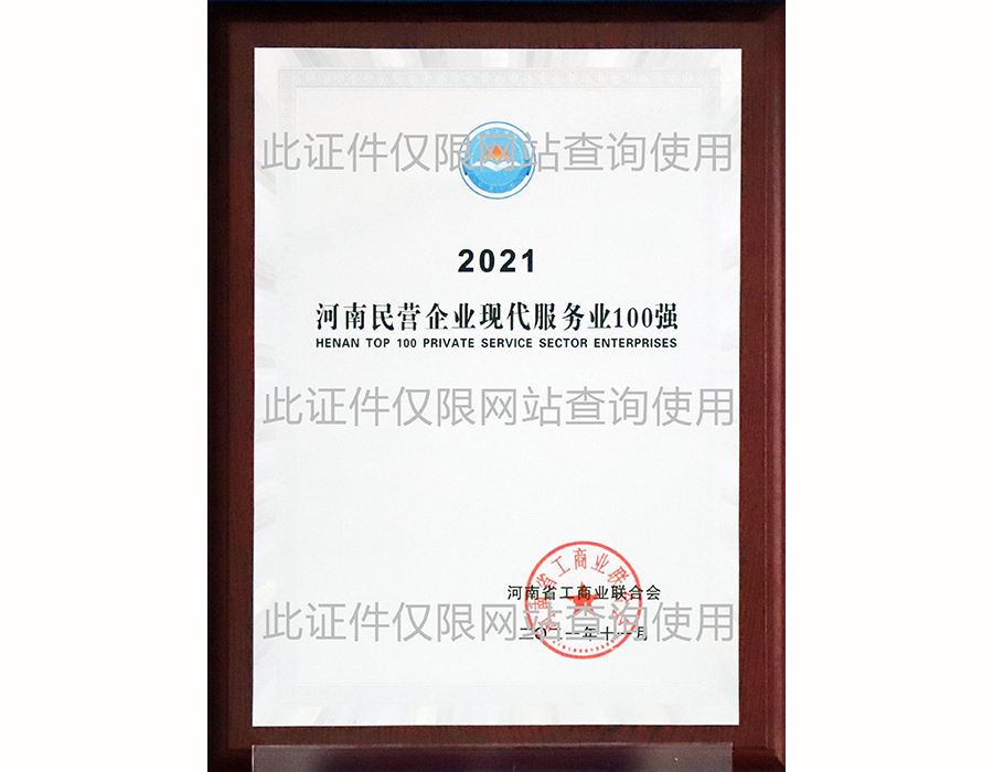 河南省民營企業(yè)現(xiàn)代服務(wù)業(yè)100強