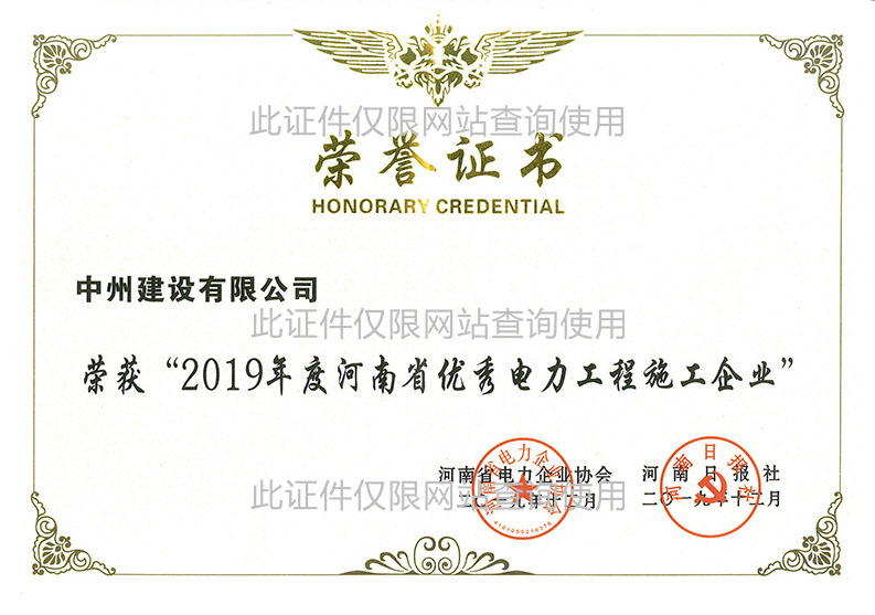 2019年度河南省優(yōu)秀電力工程施工企業(yè)