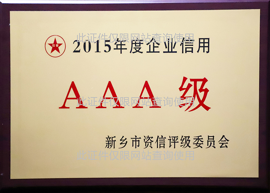2015年度企業(yè)信用AAA級
