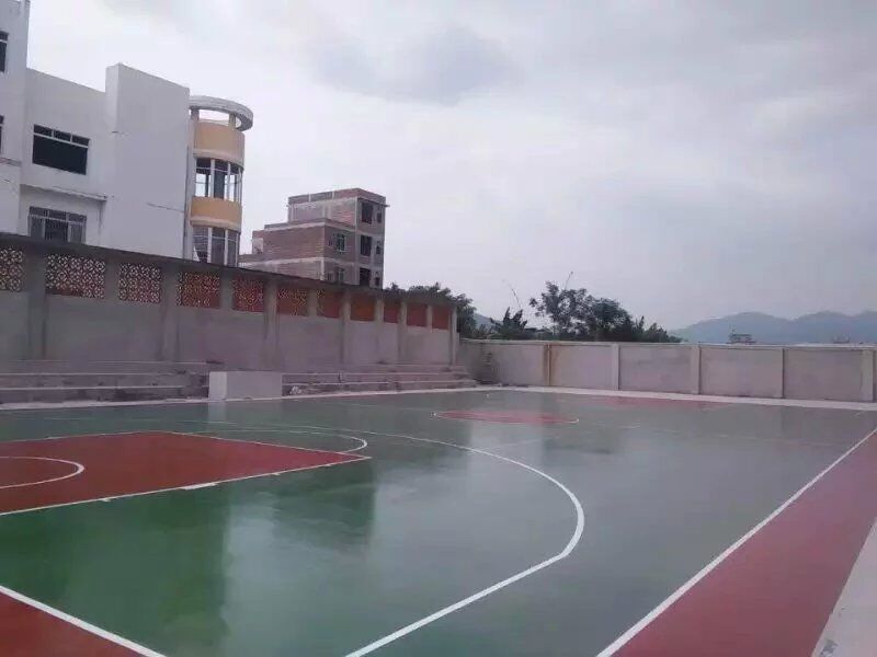 湖北蘄春縣蘄州鎮(zhèn)的硅PU籃球場、排球場地今天完工,師傅現(xiàn)場發(fā)回來的照片。深圳2310平丙烯酸籃球材料已進場,在此要特...